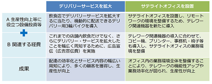 業務改善計画全体として生産性向上が認められる場合、生産性向上等に役立つ設備投資等を行う取り組みに関連する費用として、業務改善計画において計上された経費(=関連する経費)についても助成対象として拡充されます。