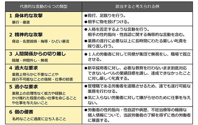 ■「職場におけるパワハラ」6つの類型(タイプ)